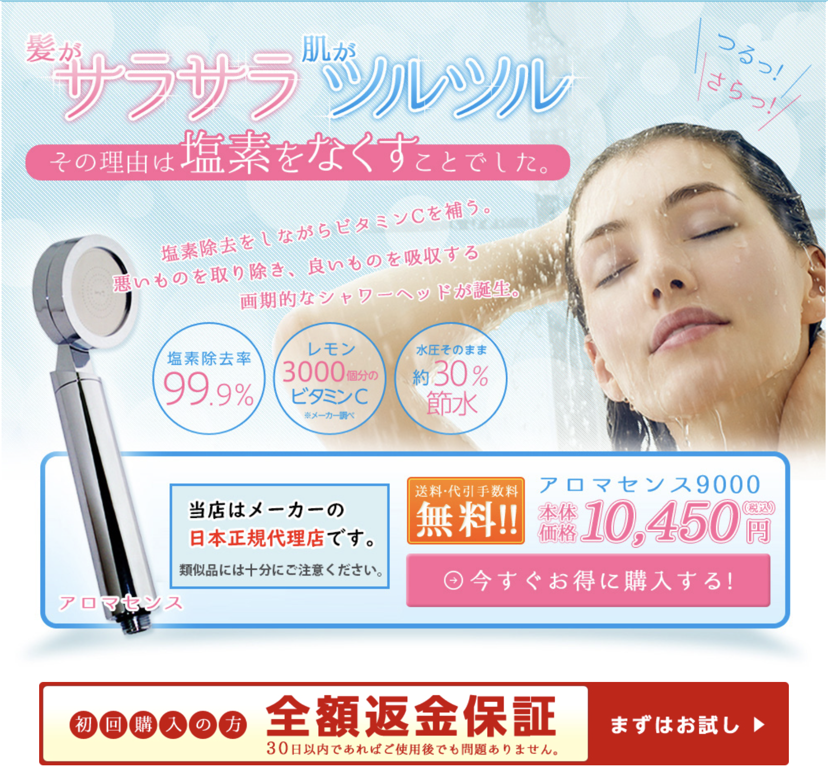 ✅ 99.9%の塩素除去で、敏感肌にもやさしい
